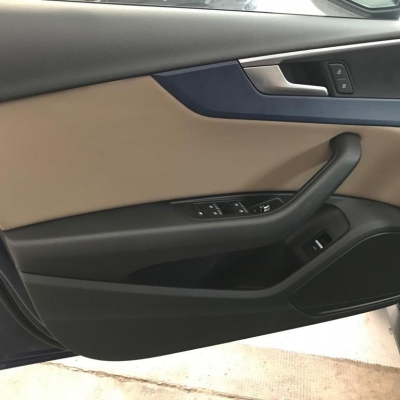 wrapping Audi con pellicola 3M codice BLU OPACO 1080-M27 MATTE DARK NAVY + oscuramento vetri posteriori + pelle marrone Panama codice 5504 . Made in Italy by Gruppo Mg (PRATO)